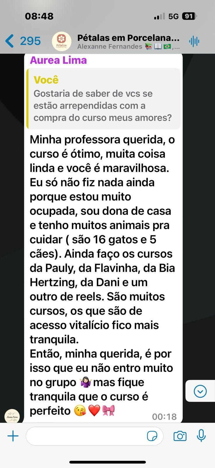 Essa jornada me levou a um novo propósito: compartilhar o que aprendi. Assim nasceu o curso “Pétalas em Porcelana Fria” – um projeto feito com muito carinho, inspirado na beleza das flores realistas, pensado para quem quer aprender, criar e se apaixonar por esse universo.